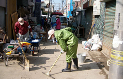 JENは、現在、石巻市で、泥出し・瓦礫撤去、仮設住宅への物資配布、